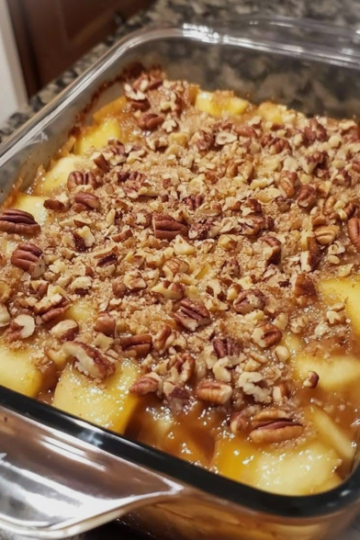 Ingredients:One cup of pecans, choppedOne fifteen-ounce can of undrained crushed pineappleOne can of apple pie filling (21 oz) One package of yellow cake mix1/2 cup (1 stick) melted unsalted butterInstructions:Set the oven temperature to 175°C (350°F). A 9 x 13-inch baking dish should be greased.Evenly distribute the smashed pineapple and its juice in the bottom […]